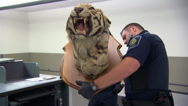 A traveler has suitcases full of surprises; A Canadian couple returns home with a man-eating beast; two Americans tow their friend's boat to Alaska.