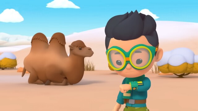 Los exploradores júnior intentan curar a un camello herido en el desierto de Gobi y lo ayudan a reunirse con su caravana.
